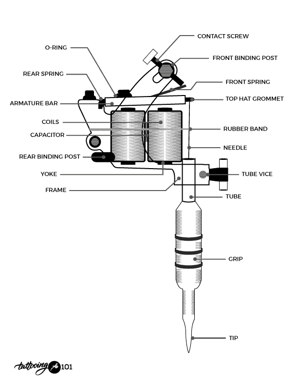 Taking apart your tattoo machine and putting it back together now will quickly familiarize you with the components so you’re able to do so in an “emergency” situation down the road. For example, if a spring breaks mid-tattoo.