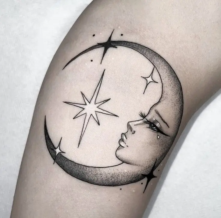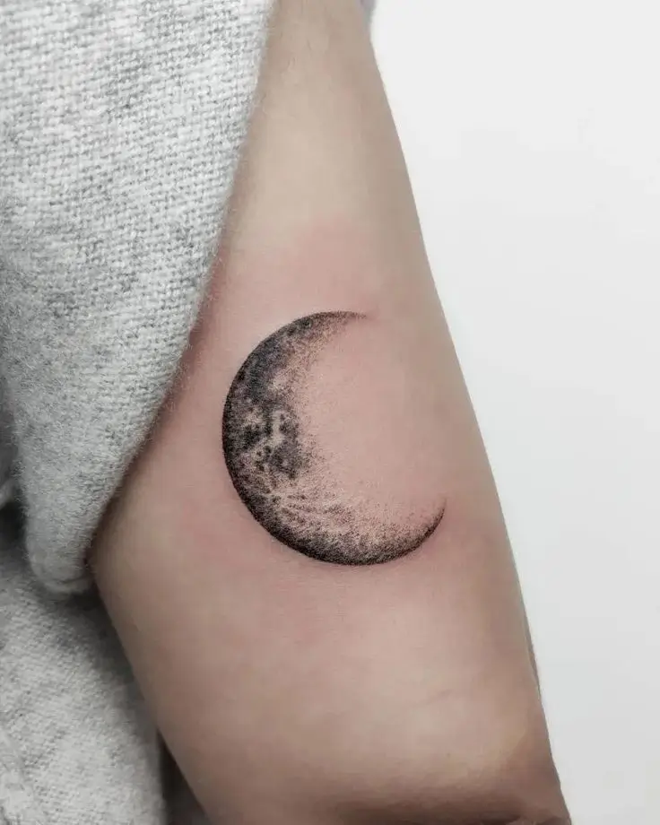 Moon tattoos let tattoo artists play with the idea of contrast - whether they’re playing with light in their designs or juxtaposing a hollowed-out crescent moon with a circular sun.