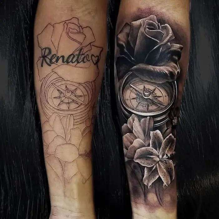 Whether they’re representing the life of a traveler or someone’s moral character pointing toward “True North,” compass tattoos are very popular design ideas.