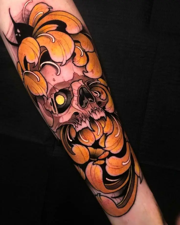 Skull tattoos are some of the most popular designs in the industry. A great way to make yours stand out is to choose a unique style and add unique surrounding elements.